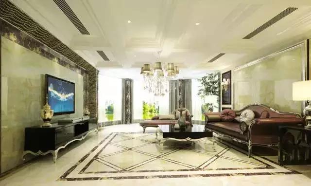 微晶石、仿玉石瓷砖璀璨晶华的砖面效果,同样是打造高贵客厅的重要选择。
