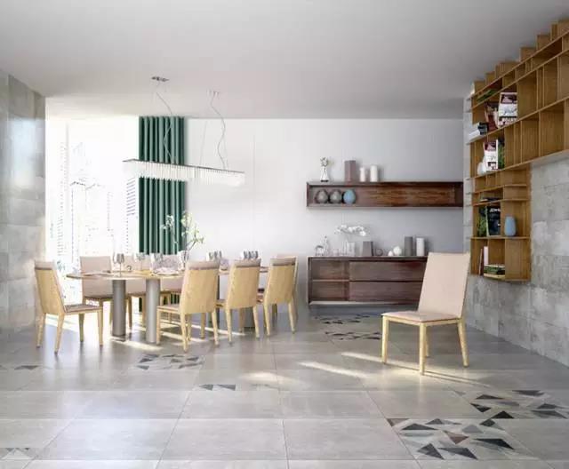 这种拼花样式比单色瓷砖更显丰富高贵。相同规格、不同色系的两款瓷砖,用斜铺、点阵式、条纹式等铺贴组合,打造铺贴出工整又大气的拼花方案。