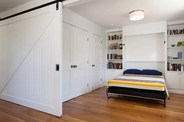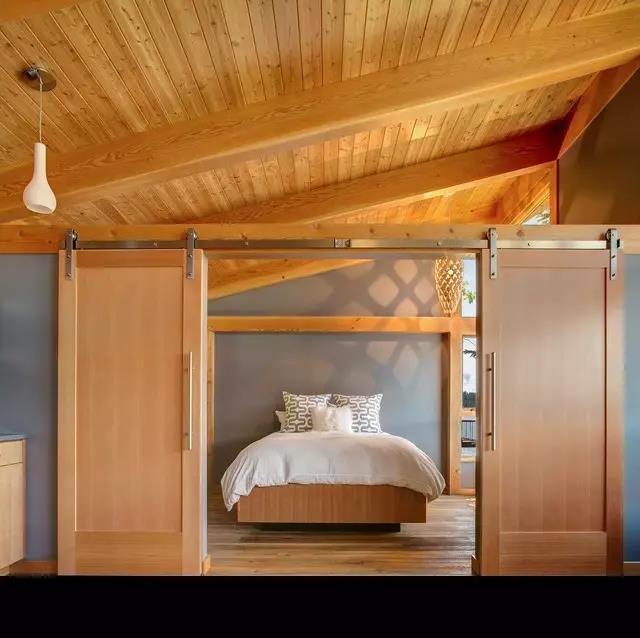 谷仓门几乎是所有隔断门的百搭款,无论是用浴室、卧室、阳台、厨房都不会太突兀。所以选谷仓门用在卧室与客厅的隔断出错率也很低!