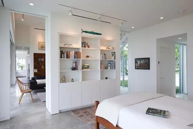 这种半墙式的隔断在国外的案例中经常看到,墙面除了做隔断还可以做嵌入式的收纳区。好看又实用。不过这种半开放式的隔断相对开放,并一定适合所有人。