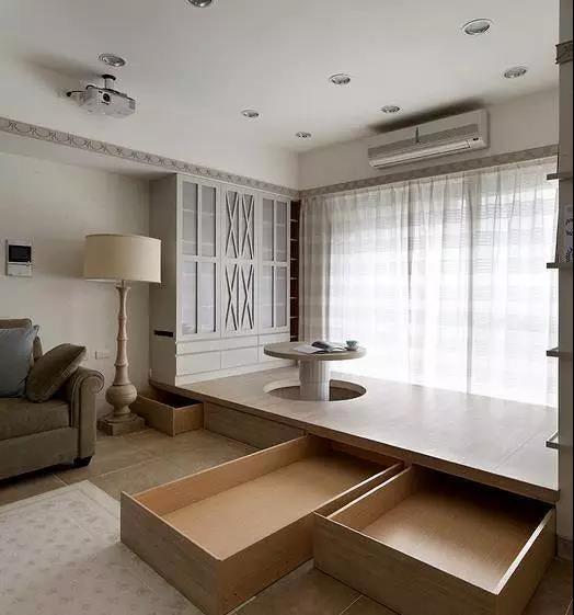 阳台、飘窗这类空间非常适合打造榻榻米,相当于为其赋予了新的功能定义。