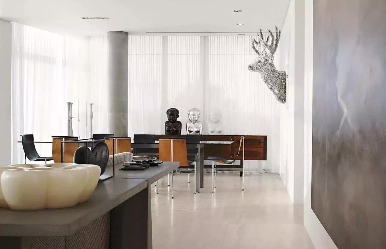 黑白的配色最简单也最经典,整个空间优雅而知性,黑色的大量运用在于平衡空间的色调。