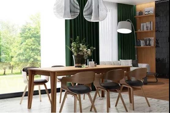 色彩对人心境的影响是巨大的,比如卧室本身格局比较狭长,墙体刷了粉绿,沙发是灰白细格,此时窗帘再用鹅黄,而且还是透光材质,确实会让人感到压抑不适。所以,窗帘色彩一定要和整体布局协调好!