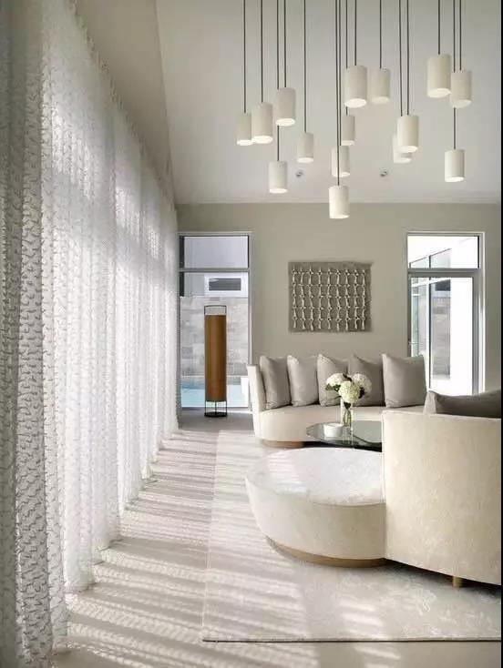 一般来说,客厅承担活动性功能多,起居之外常兼具会客、娱乐等较公共的用途,因而需要打造通透、敞亮的空间视感。半透的薄布、轻纱往往会很实用。
