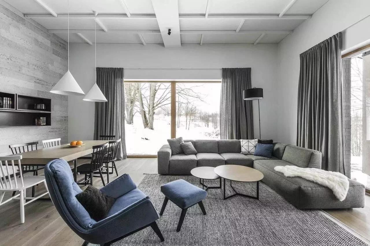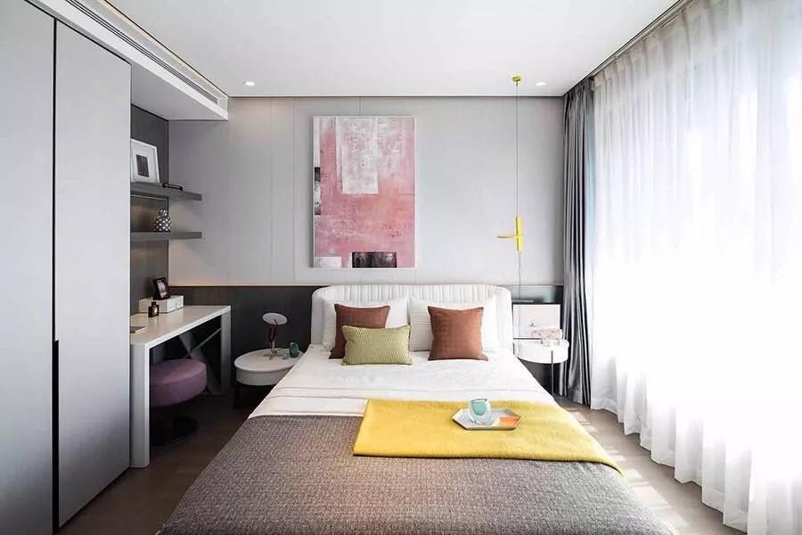 高级灰自带现代味,天生一副文艺感爆表的“高冷范”。整体简洁纯粹,以免多色间争奇斗艳,带来躁动感。用窗帘呼应地毯、沙发等其它软质家装的色感,是简单又保险的做法。