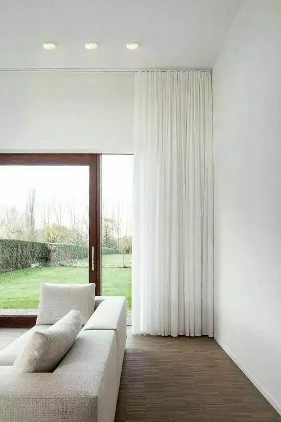 飘逸的浅色调轻纱仪态万方,重量小也易于清洗打理;如果要凸显漂浮感,帘布就以不贴地面为宜。
