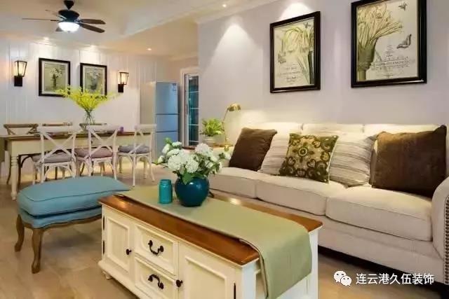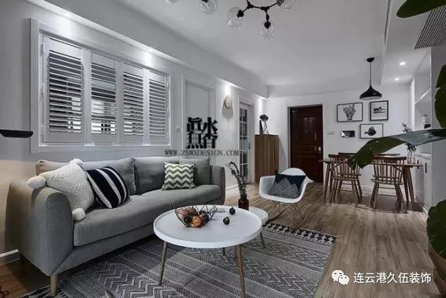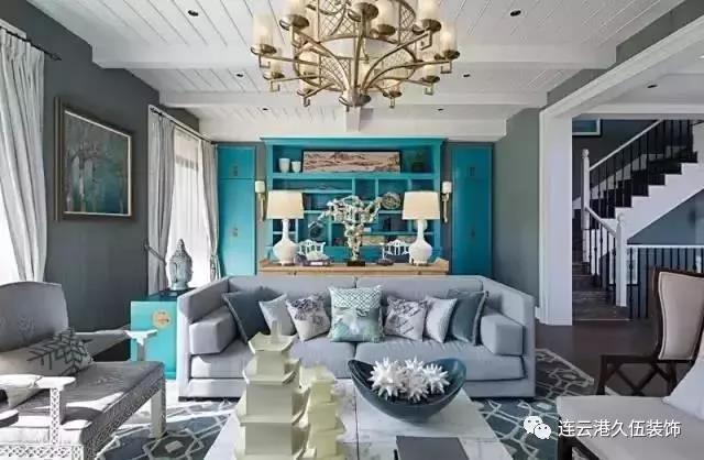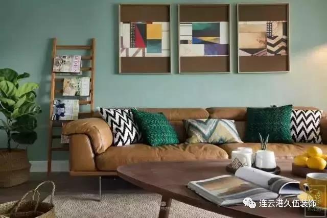 许多时候,沙发是否靠墙,是你说了算,甚至你可以让沙发只有一半靠墙,那么,你完全可以发挥想象空间进行设计了,沙发墙可以是空气,也可以是一个矮柜,一个半高隔断,也可以是半面墙。