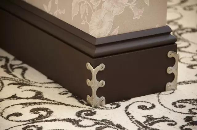 美观性:如果你家贴了深色系的花纹壁纸,那么纯色的踢脚线会非常适合你的搭配。整体深色的墙面提升房间优雅的格调,素色的踢脚线让人内心感觉平和温顺。