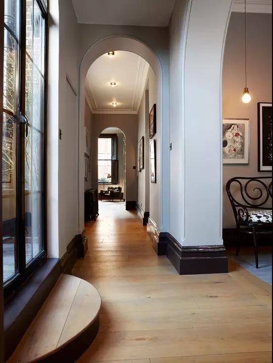 美观性:在转角以及楼梯的地方设计踢脚线会让产生一种视觉的延伸感,层层深入地感觉,增强房间的立体效果。