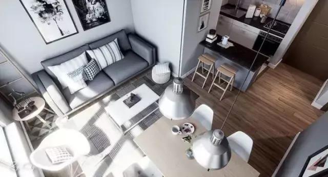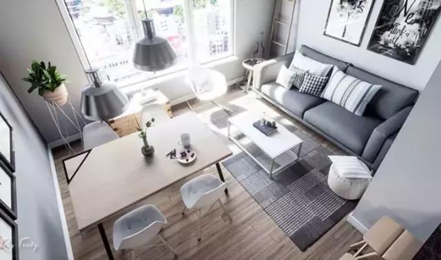 北欧风一贯擅长软装,所以在硬装这块大多都是非常简洁的,就是四面白墙,吊顶基本上也不做,这套案例也是如此,标准的小户型北欧风,通过软装使家居显得非常有生活感,但又不会显得散乱无章。挂画、绿植加上灰色系软装主色,显得很小清新。