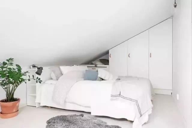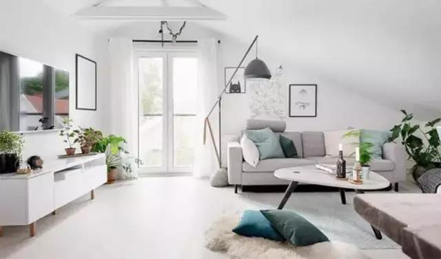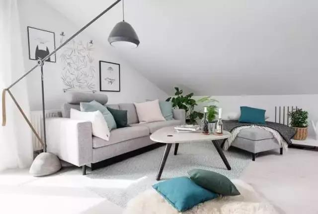 这是一套阁楼空间,这种空间的设计利用相对于正常的户型来说更加复杂,因为屋顶有坡度,所以需要根据这个坡度来进行设计,选择了很多低矮、简单的家具,让空间显得不那么有压迫感,也使空间的使用达到了最大化。随便摆放了很多绿植,与挂画等进行搭配,形成标准的北欧风格。
