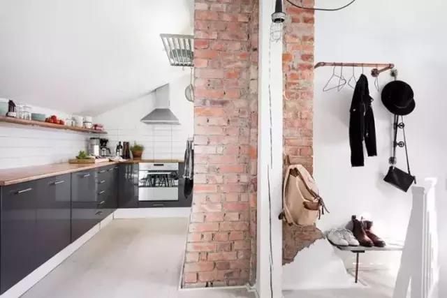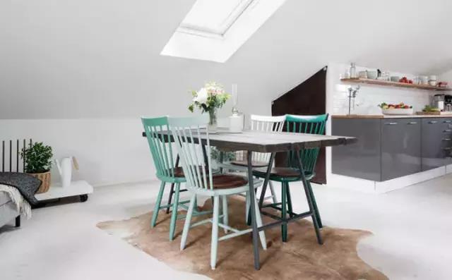 很有趣的是,这套设计中的客厅里不包含电视,而是一个餐桌,所以设计这种东西是需要跟着屋主人的需求走的,没有什么“必须有”这种说法,你想过什么样的生活就设计成什么样子。加上这本身就是一个小户型,考虑到“最常使用”才是最关键的,学习好这一点,抛开传统设计配置,未尝不能给你带来一个全新的感受。