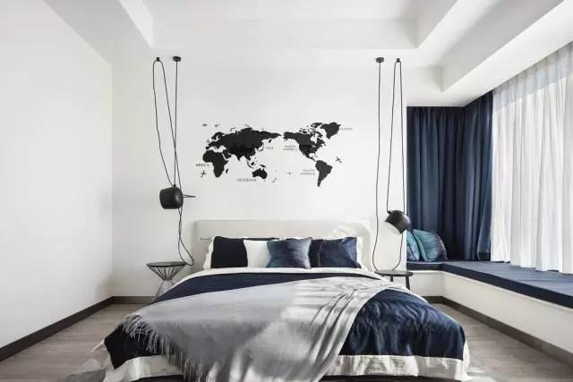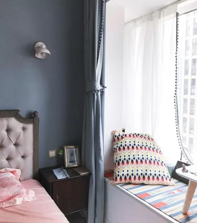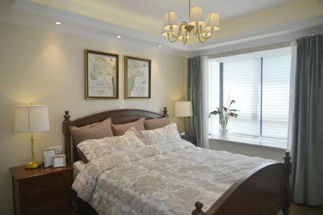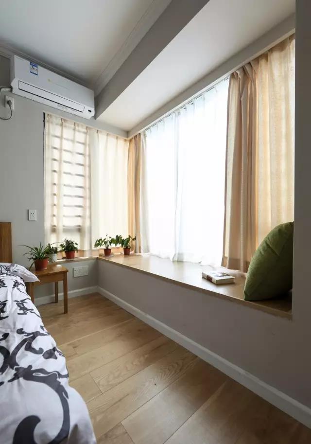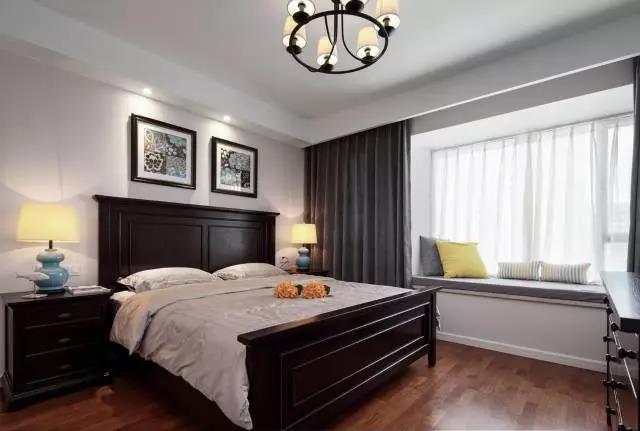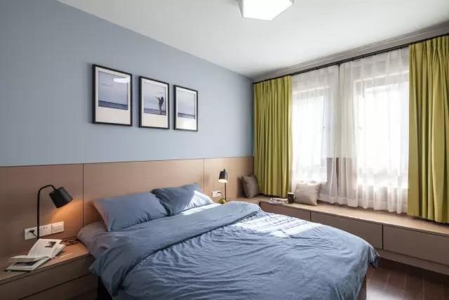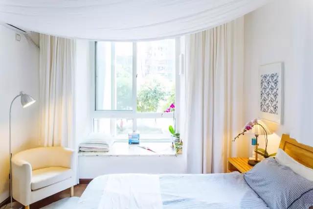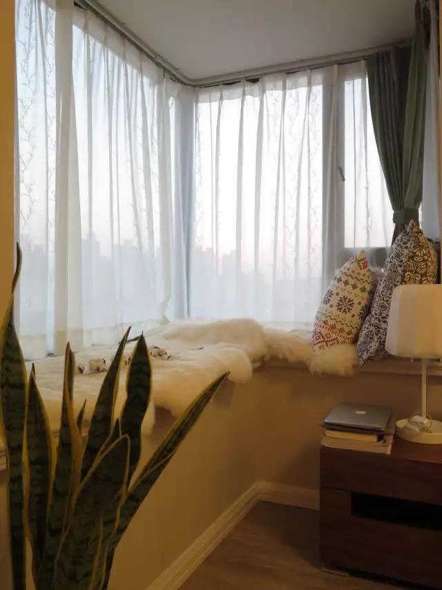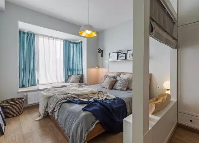 对于飘窗比较大的户型,可以选择这种方式,窗帘装在飘窗中,不占用卧室的面积,因此可以让整个卧室看起来更加宽敞、大气。