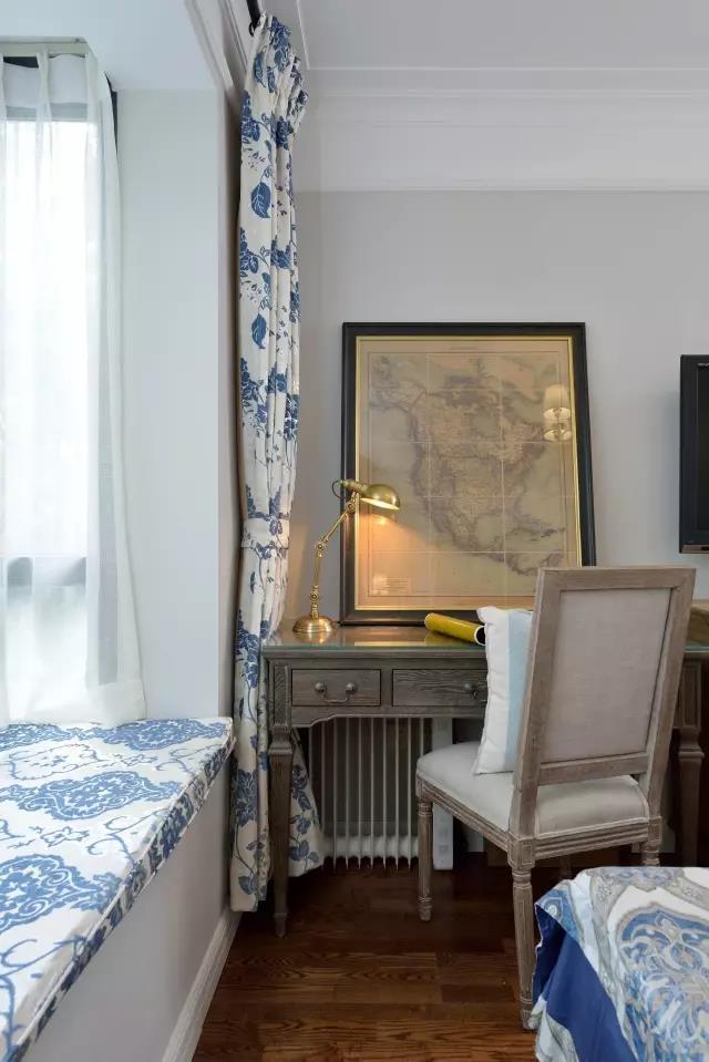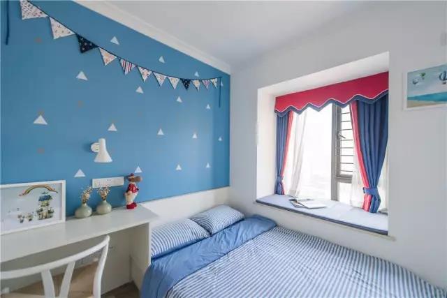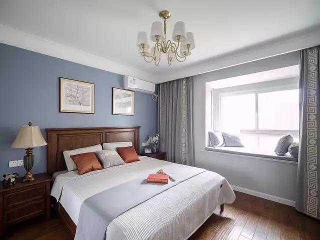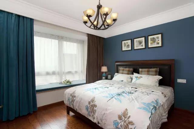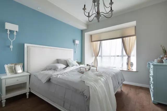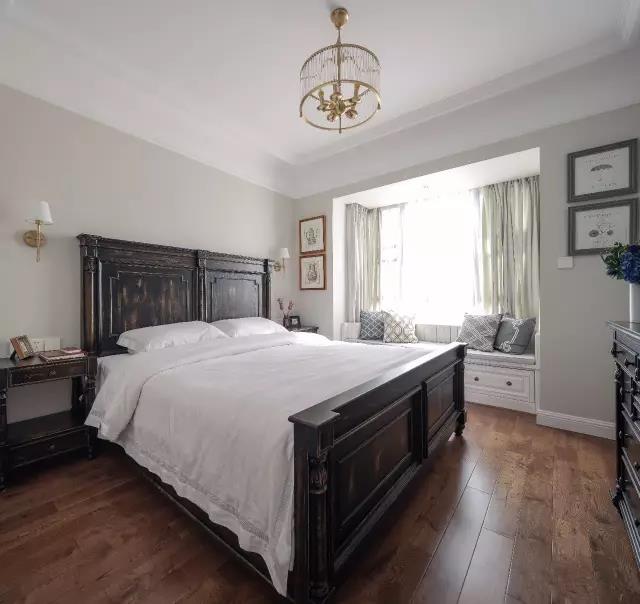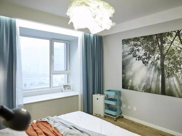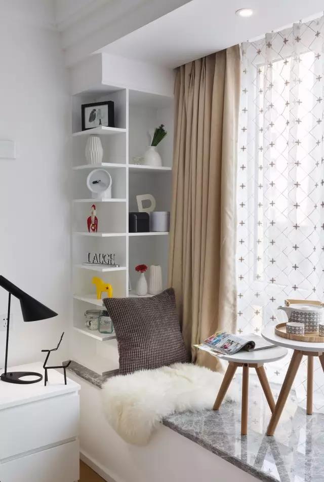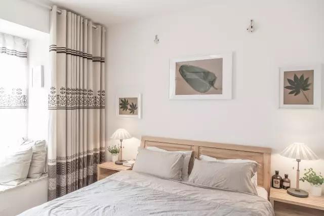对于飘窗比较大的户型,可以选择这种方式,窗帘装在飘窗中,不占用卧室的面积,因此可以让整个卧室看起来更加宽敞、大气。