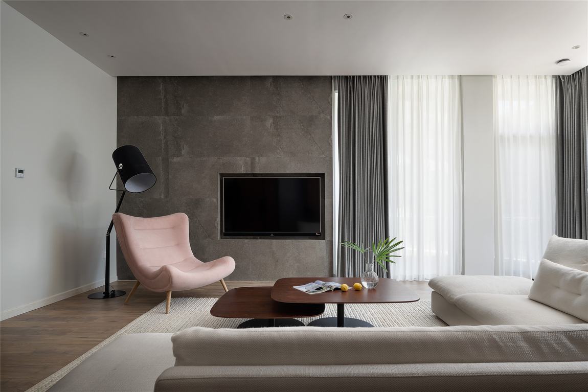 本案中,设计师以"简化生活"为设计理念,以"回归"为主题构思,是为了满足业主希望在繁忙的一天工作后,回到家中去找寻一份宁静与温暖的诉求,让业主回归家,回归生活,回归自然.